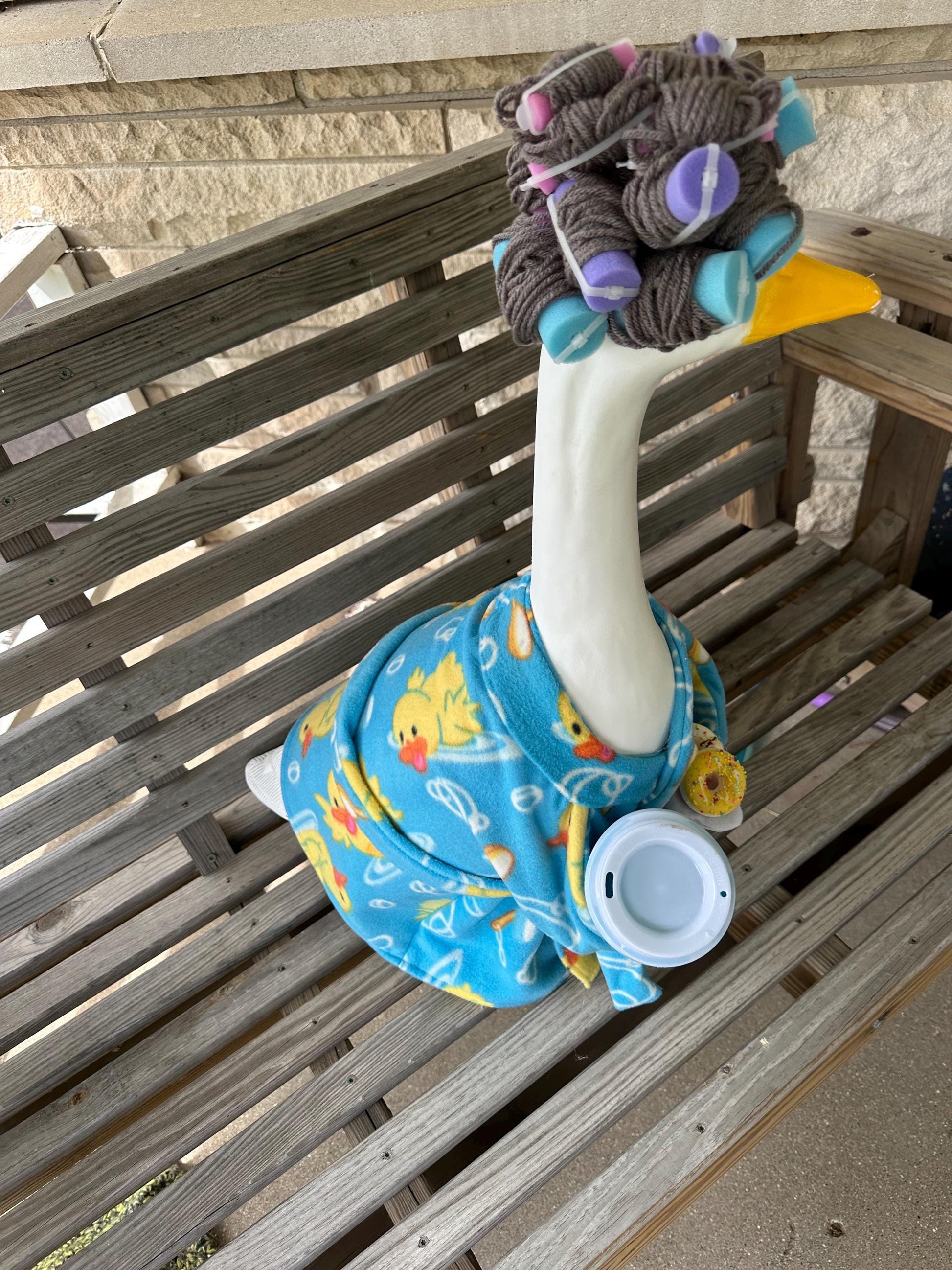 Do you love your porch goose? Why not add a wig to make her look fancy. These wigs attach with Velcro dots already attached to the wig just attached to your goose. These are made of yarn and crocheted all handmade by me in the USA.