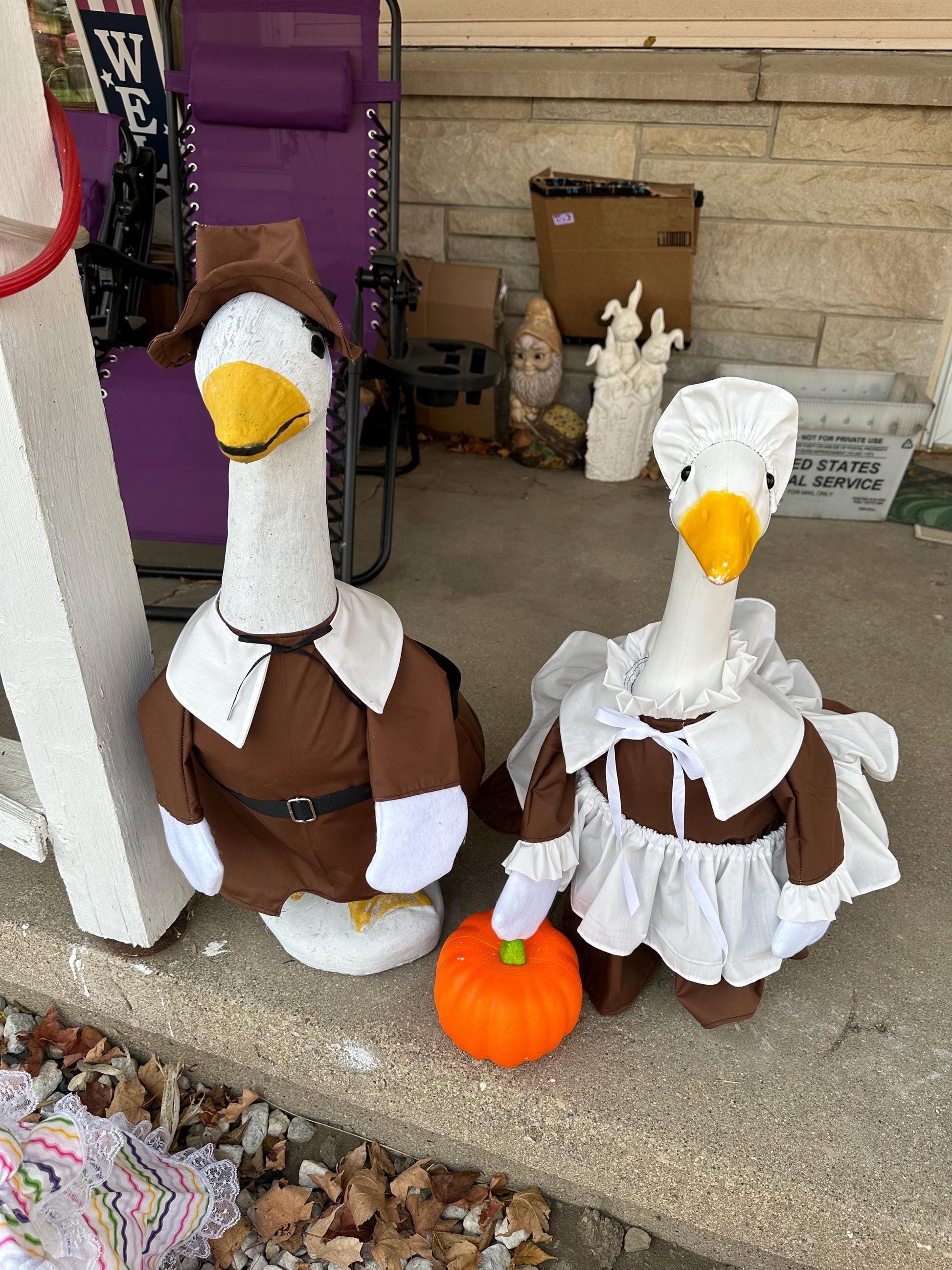 Dress up your porch, goose, in these adorqble Pilgram outfits