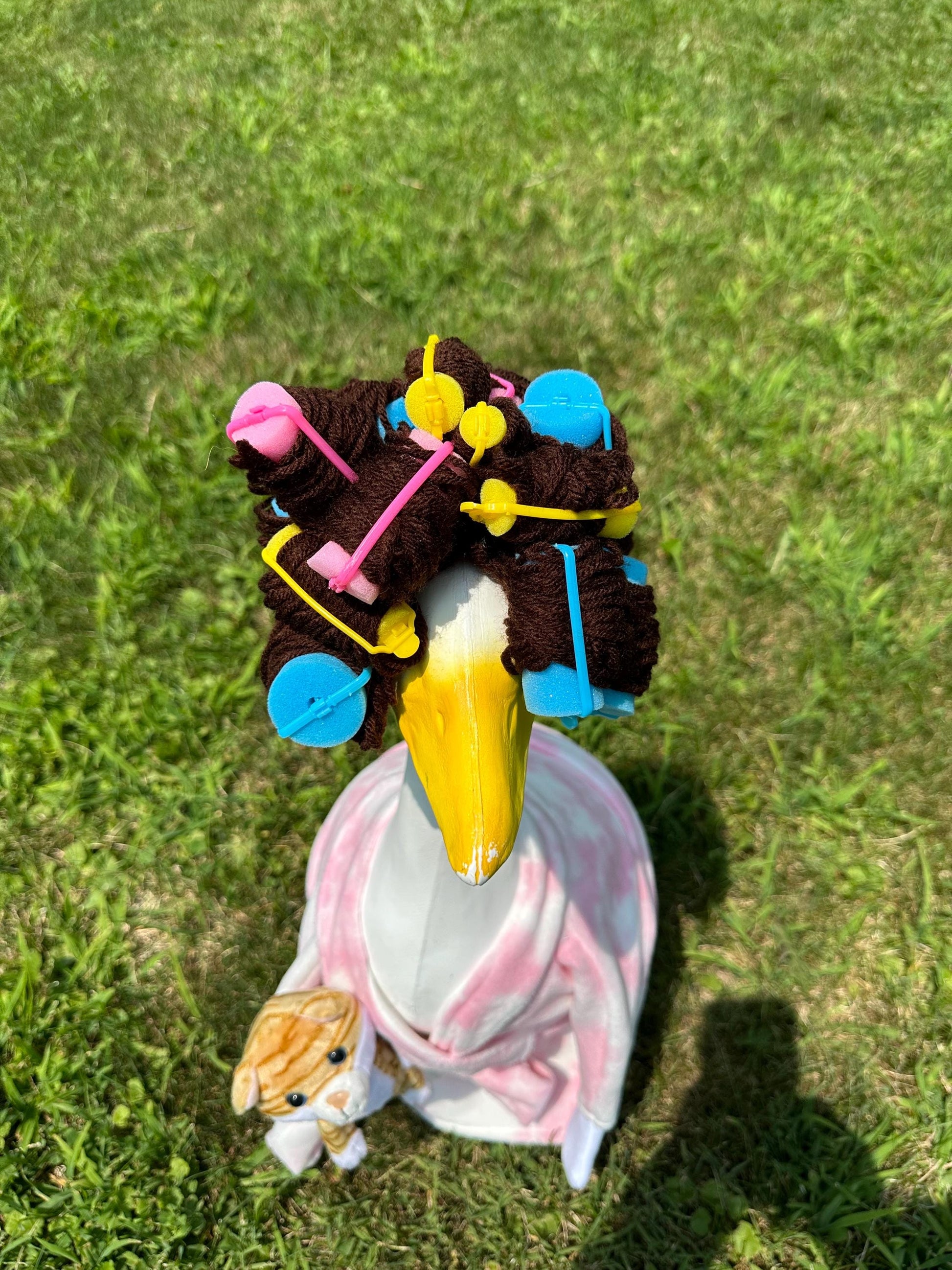 colors and textures of yarn, curlers and fleece may vary depending on availability